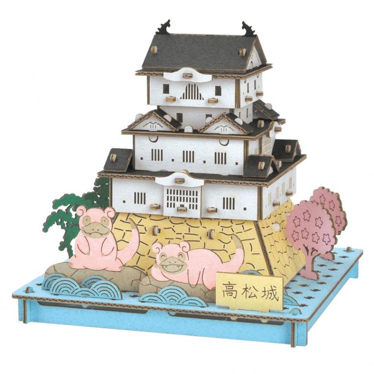精密にレーザーでカットされたダンボールのパーツを土台にプスプスと差し込むことで、立体的な建物や景色を生み出すことができます。高松市が誇る日本三大水城の一つに数えられる高松城に、ヤドンや松のパーツなどを組み合わせて、あなただけの世界を作り、お楽しみください。